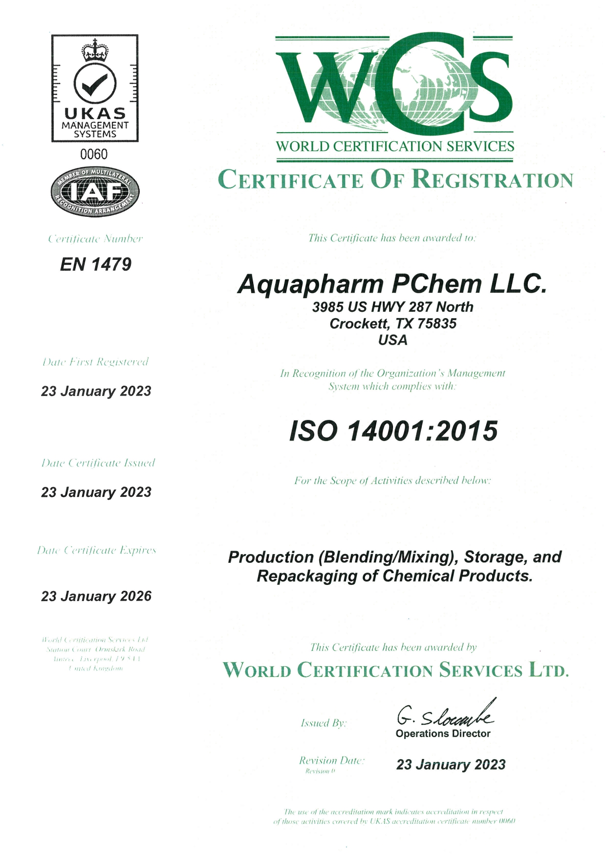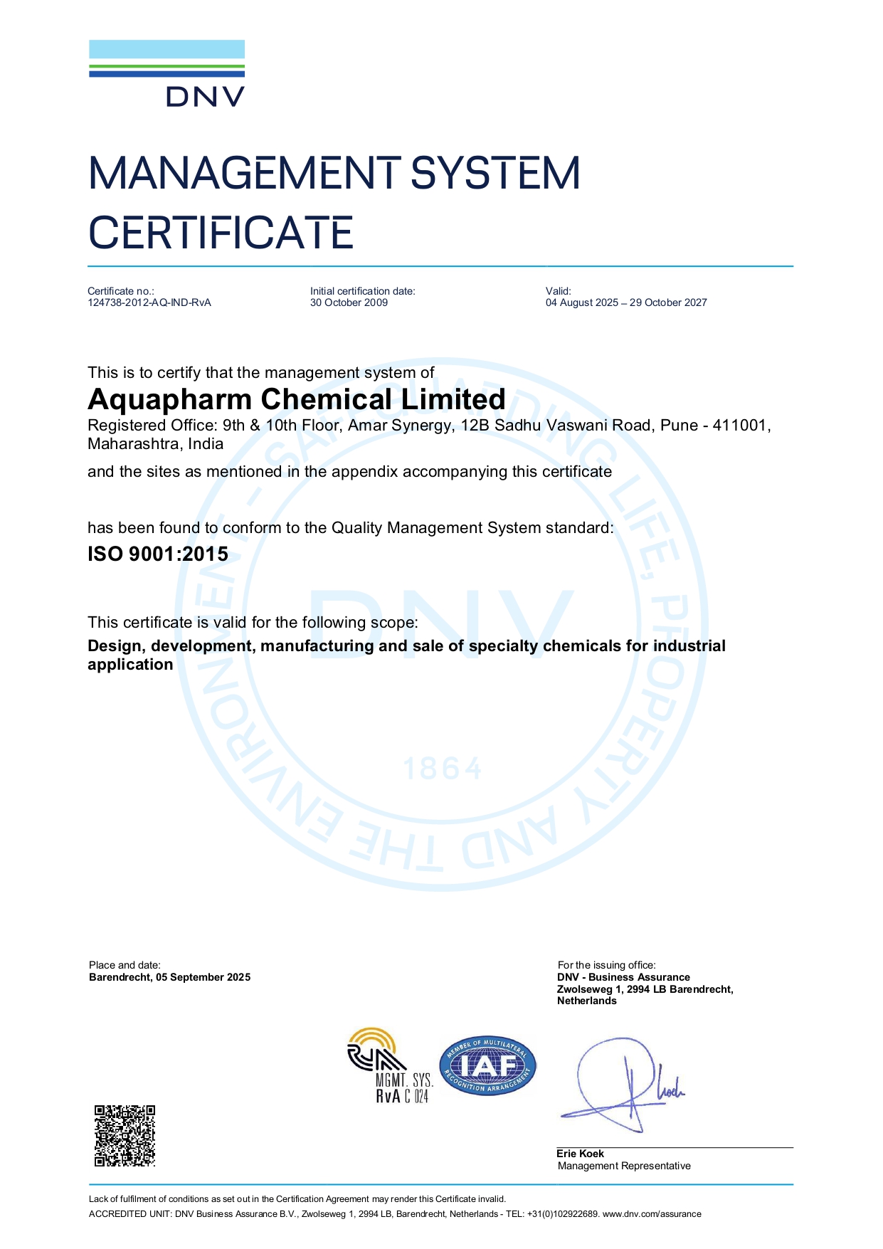 Aquapharm Pchem ISO 9001:2015